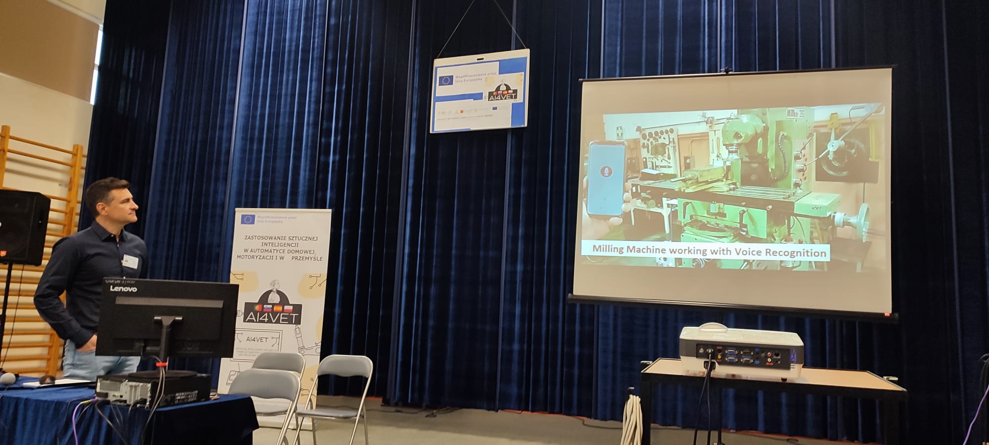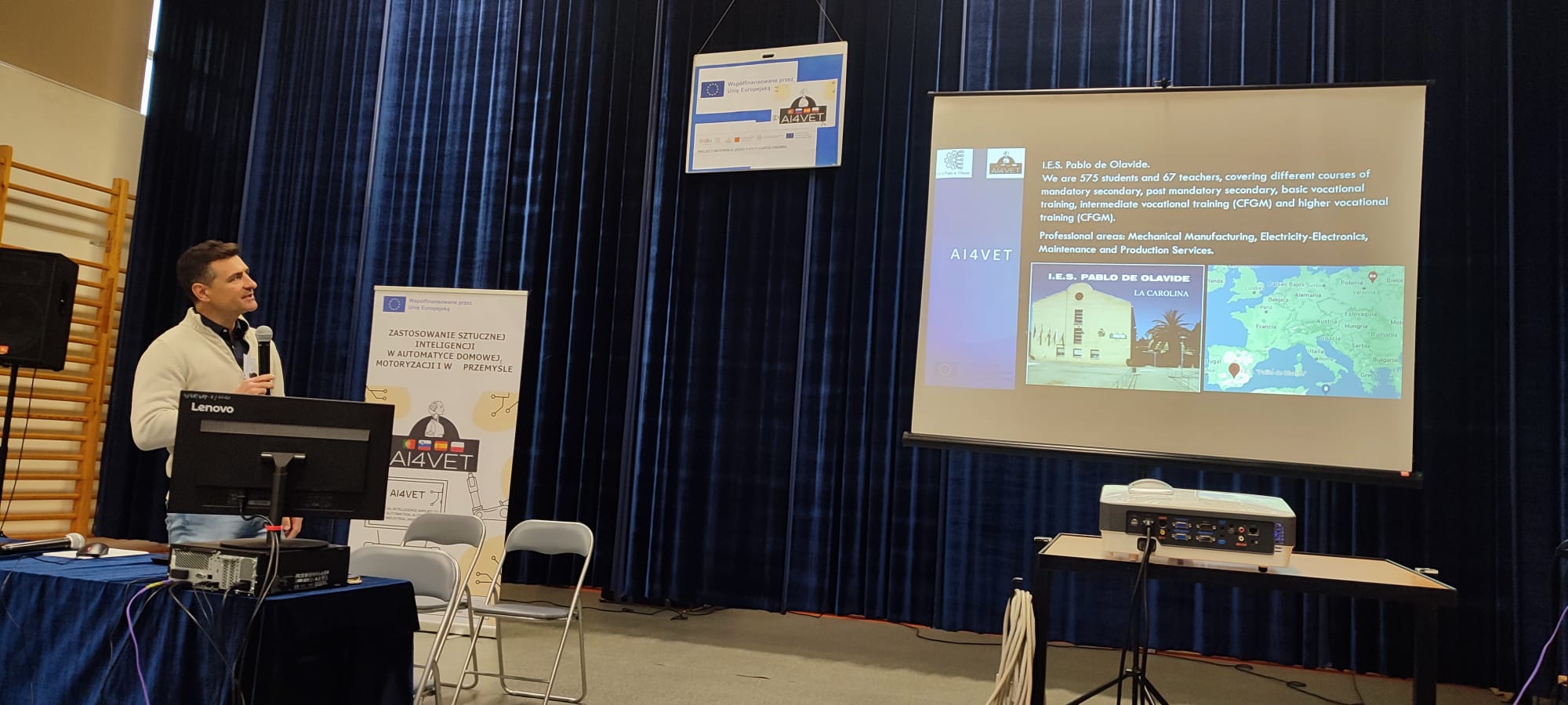 En el acto participó el Dr. Eng. Sławomir Romaniuk , de la Universidad de Bialystok y el Dr. Eng. Fernando Berzosa, coordinador del proyecto AI4VET. Además, se tuvo la ocasión de conocer de primera mano de parte del personal de CKZ involucrado en el proyecto de los resultados y demostradores desarrollados, así de el trabajo y actividades realizadas durante el proyecto. Al finalizar las charlas se procedió a la realización de un workshop donde se presentaron algunos de los demostradores desarrollados, y los asistentes tuvieron la ocasión de probarlos y experimental con ellos, así como de intercambiar impresiones con alumnos profesores involucrados en el proyecto AI4VET.