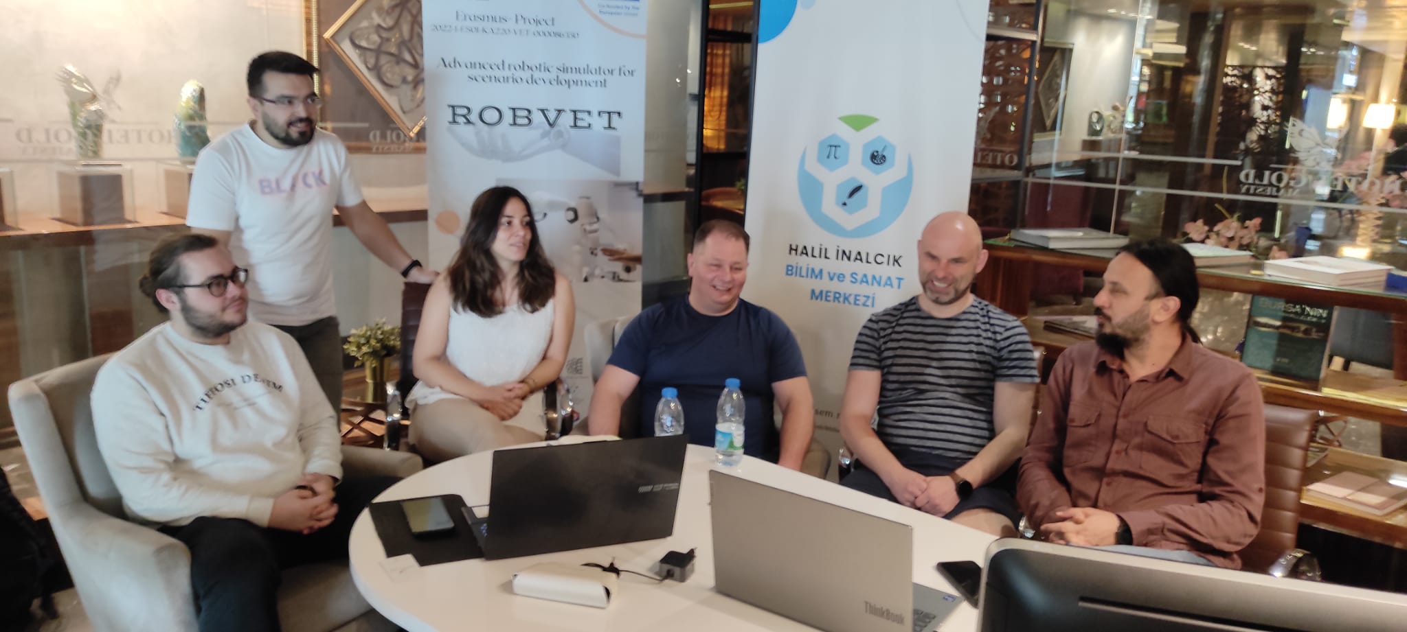 En Bursa, Turquía: Hi-Sac (Turquía), CKZ (Polonia), AIJU (España), y representantes de Synthesis (Chipre), conectados en línea.