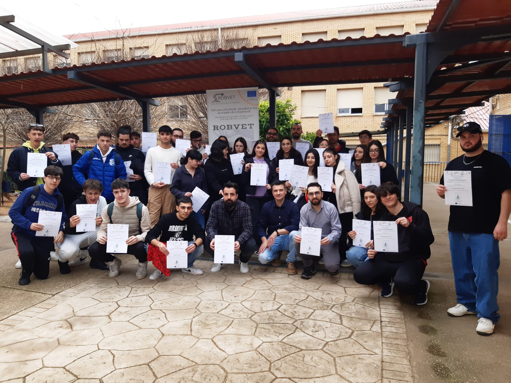 La quinta formación del proyecto ROBVET tuvo lugar del 13 al 15 de febrero de 2023, realizándose simultáneamente en La Carolina (España), organizada por IES Pablo de Olavide, y en Praga (República Checa), coordinada por ARP. Profesores, técnicos y estudiantes de los centros socios participaron en sesiones avanzadas centradas en las aplicaciones prácticas del robot MyCobot280 en contextos reales, como la Industria 4.0, la domótica y el Internet de las Cosas (IoT).